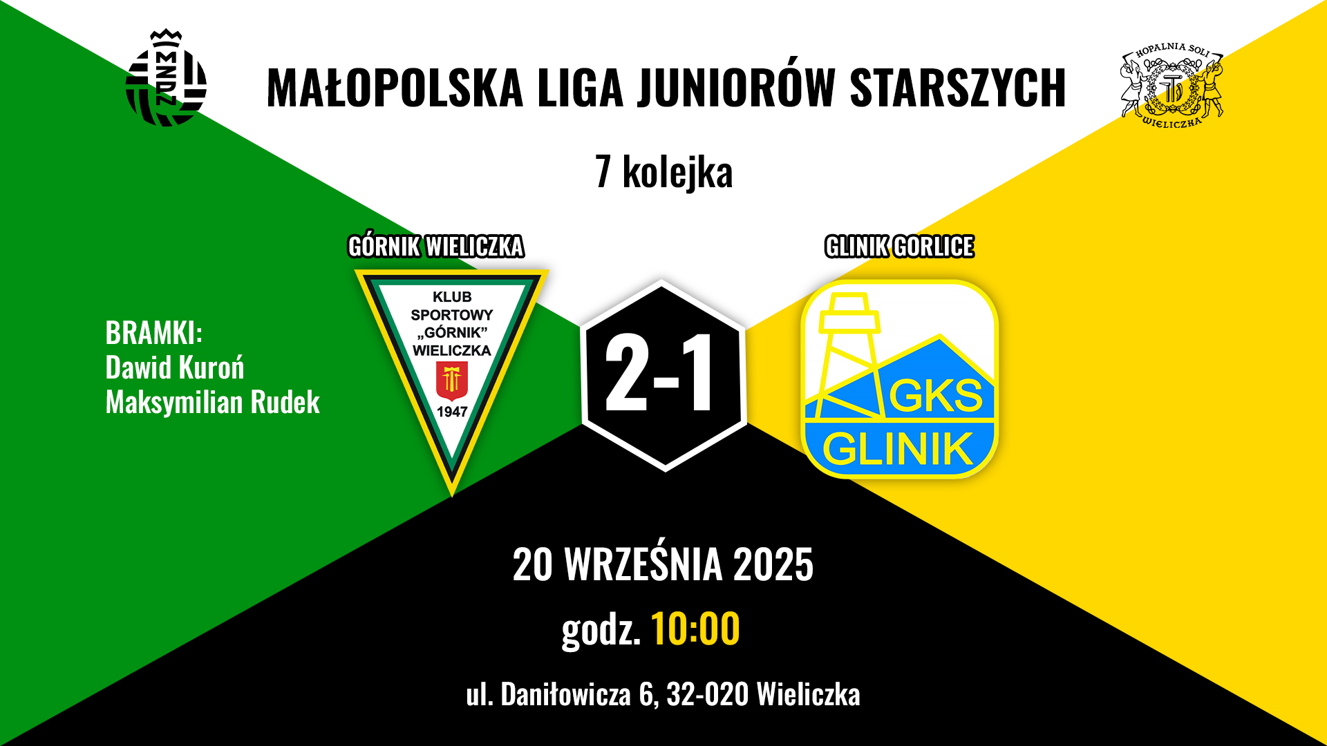 20.09 godzina 10:00, Wieliczka, Małopolska Liga Juniorów Starszych