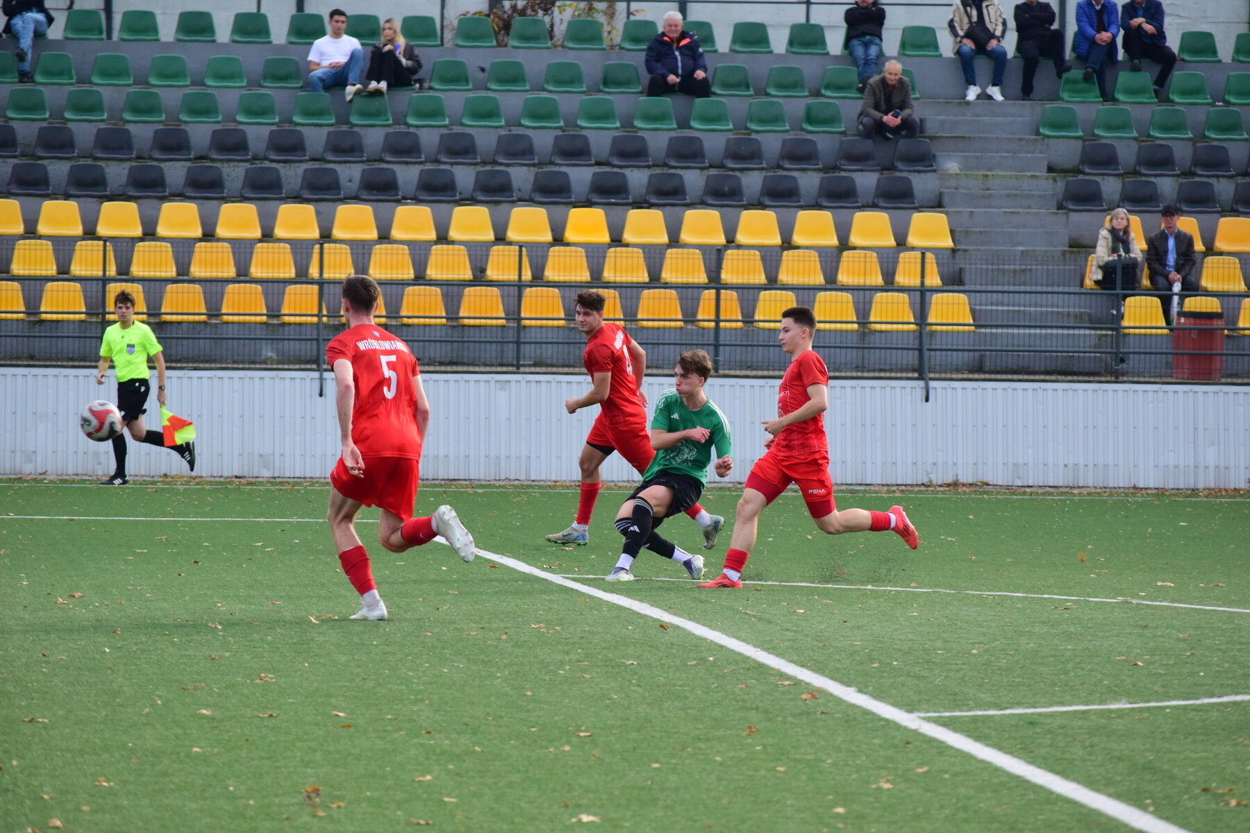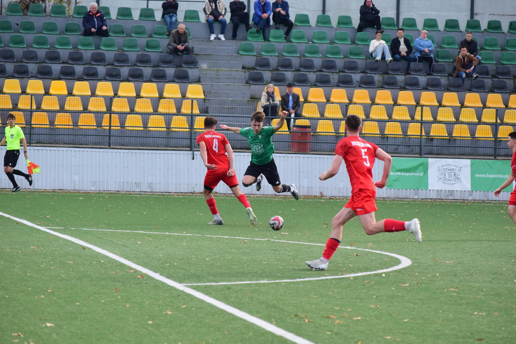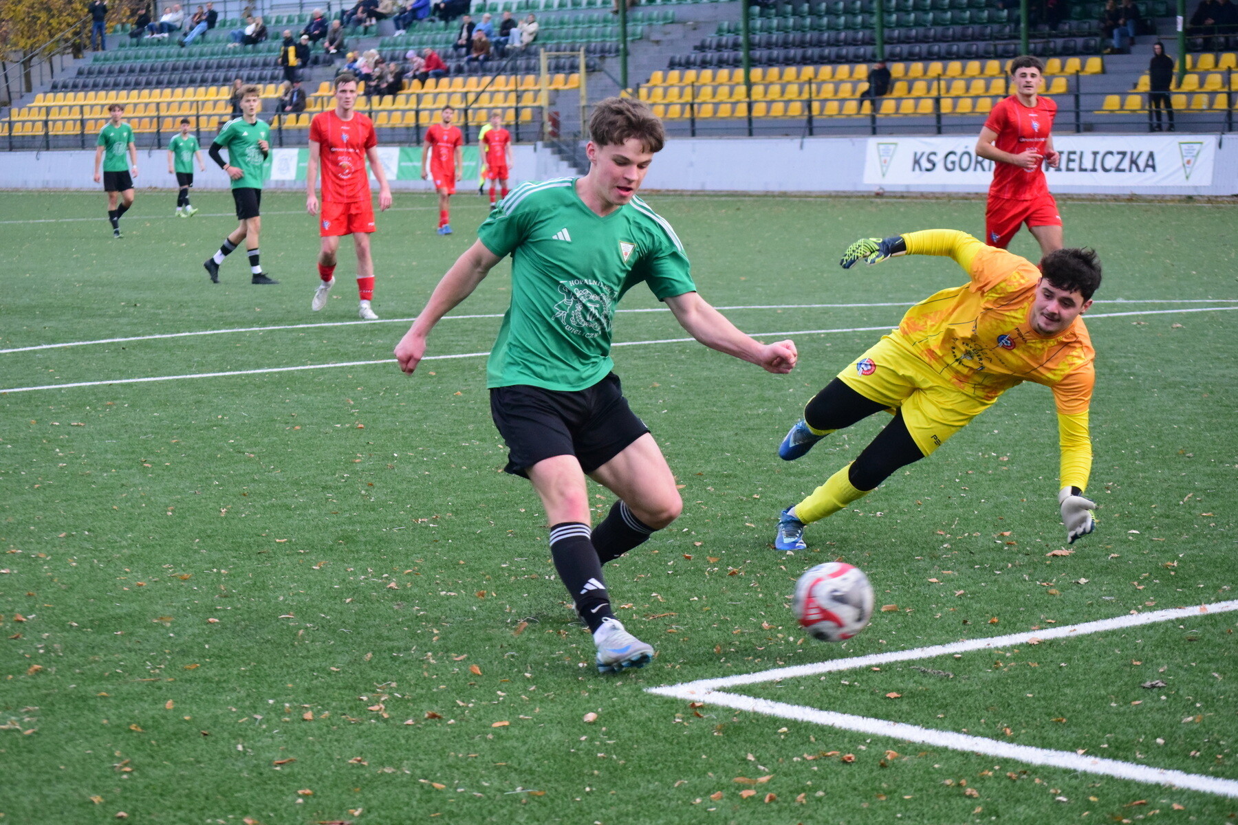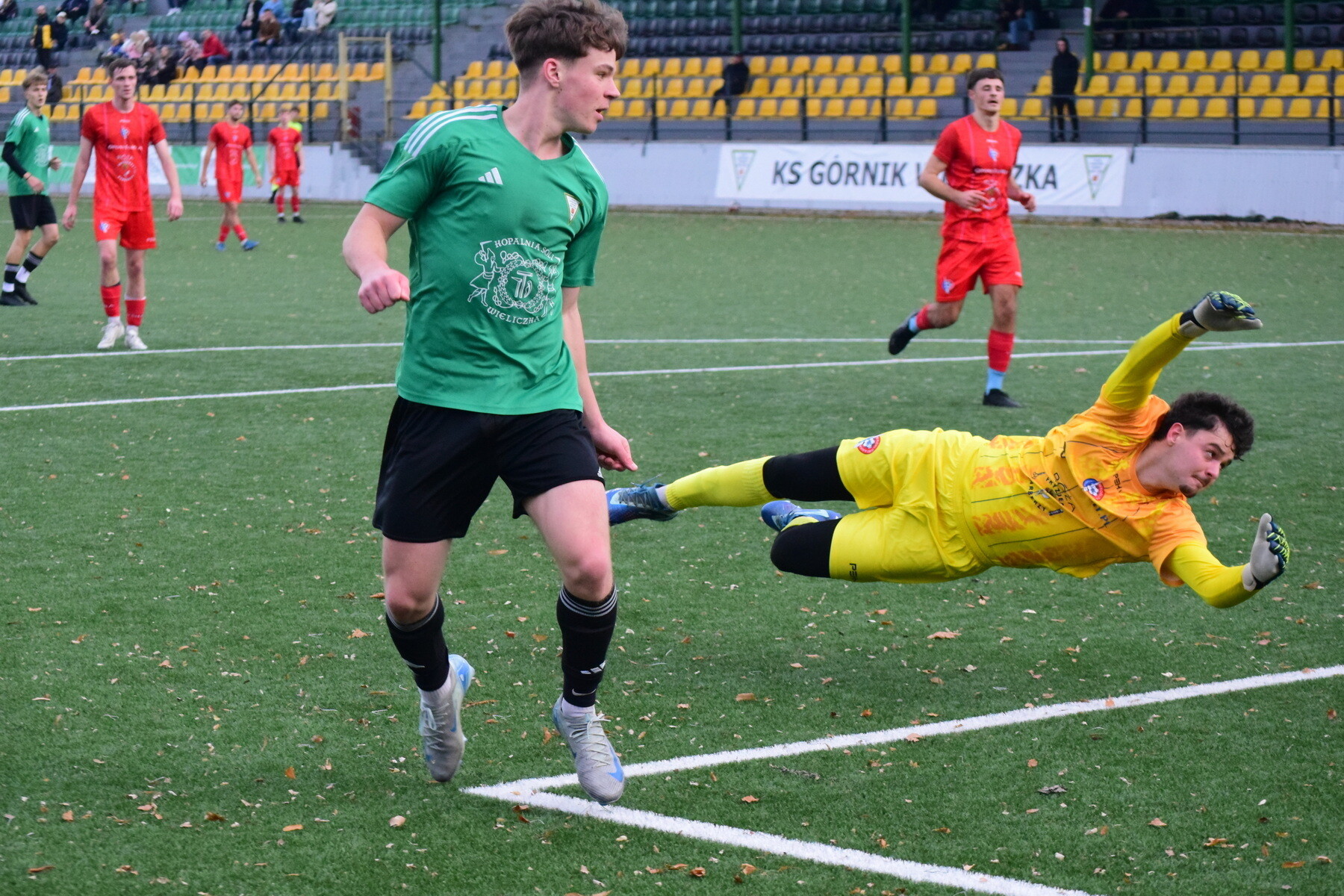 Druga połowa rozpoczęła się w podobnym stylu – z pełną kontrolą gry wieliczan. Jak przy bramce na 4:1, tak i przy piątym trafieniu kluczowy był odbiór Ciszka, który zagrał do Karcza, a ten wypuścił Olszewskiego sam na sam z bramkarzem. Nasz napastnik nie zmarnował okazji. Chwilę później było już 6:1 – faulowany w polu karnym został Karcz, a rzut karny pewnie wykorzystał Olszewski, kompletując hat-tricka.