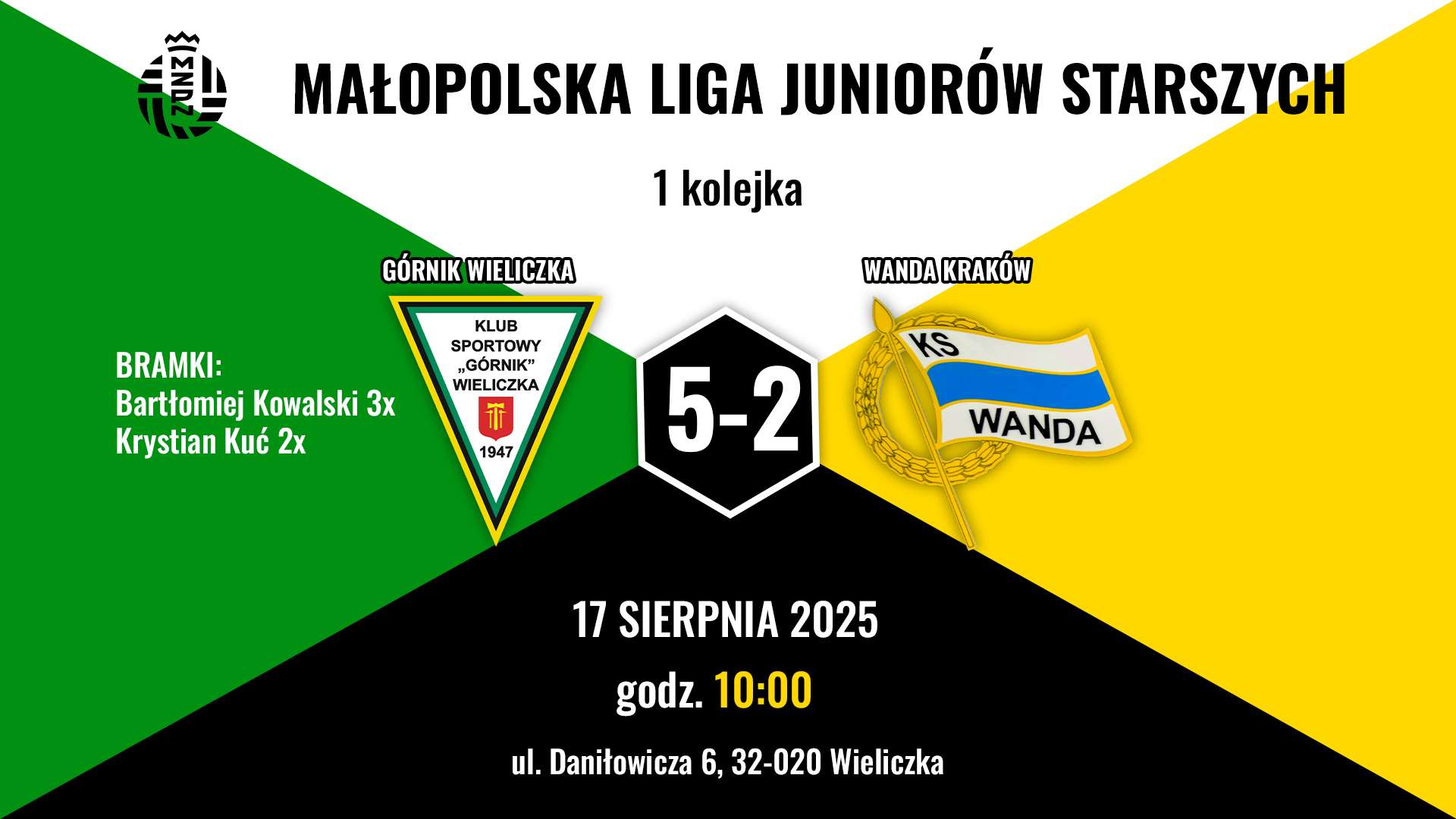 17.08 godzina 10:00, Wieliczka, Małopolska Liga Juniorów Starszych