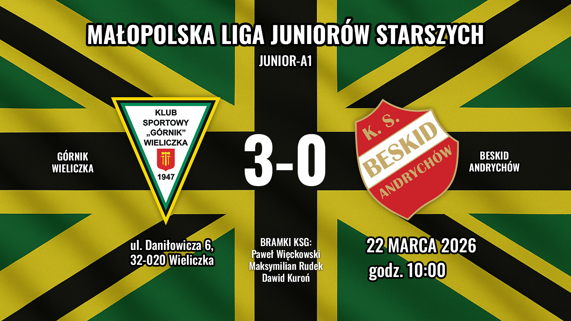 22.03 godzina 10:00, Wieliczka, Małopolska Liga Juniorów Starszych
