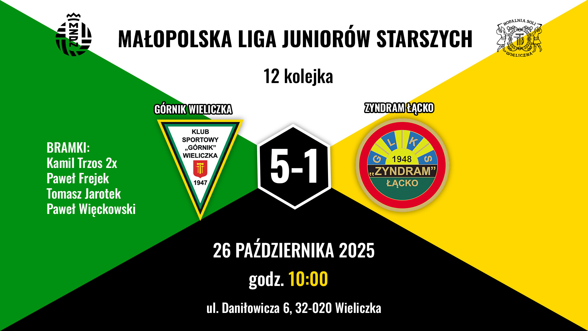26.10 godzina 10:00, Wieliczka, Małopolska Liga Juniorów Starszych